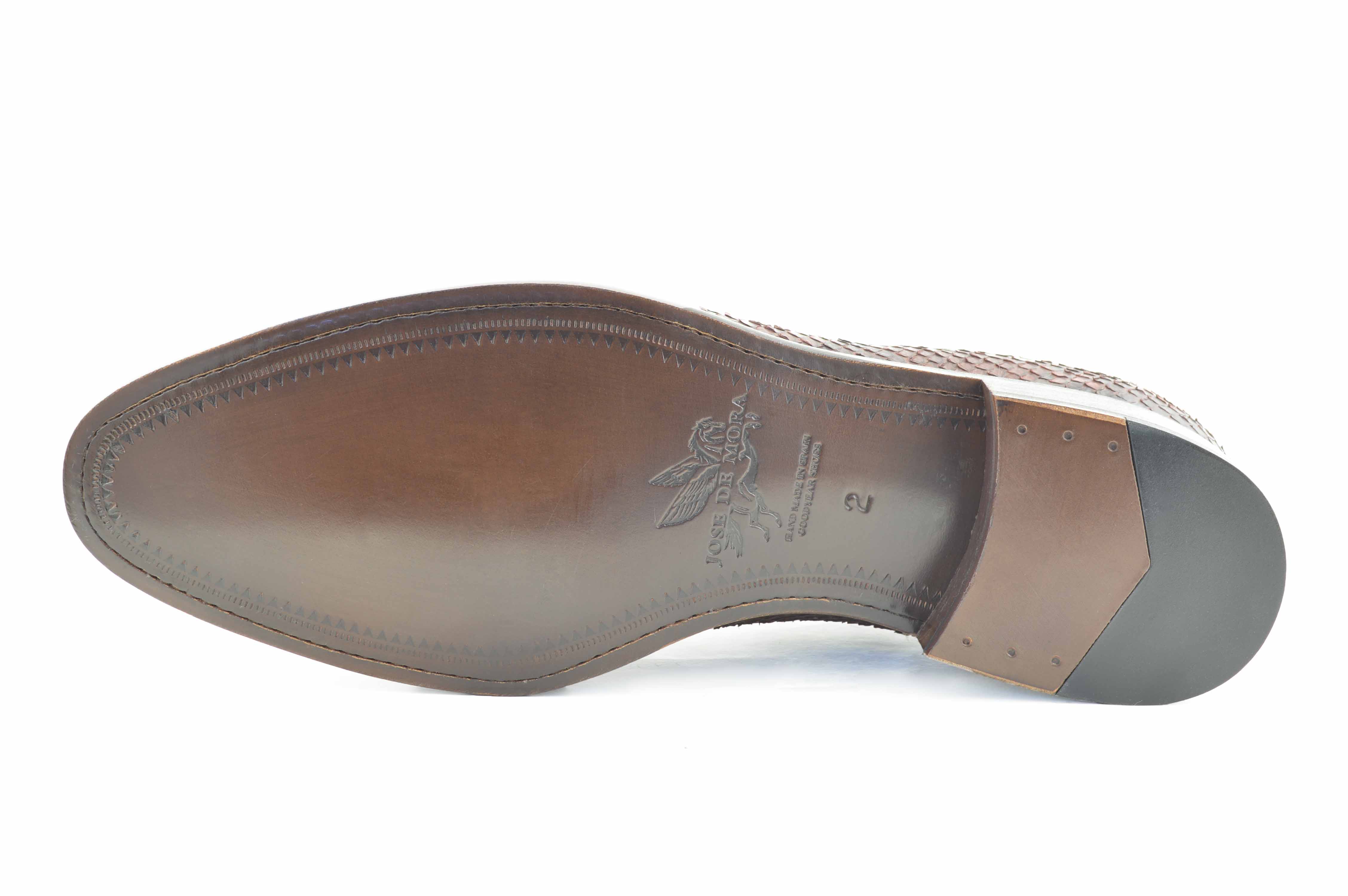 Zapato realizado en piel de Python de origen certificada. Forrado completo en piel de vacuno y suela de cuero. Proceso de fabricación GoodYear. Horma de calce confortable y apariencia alargada.