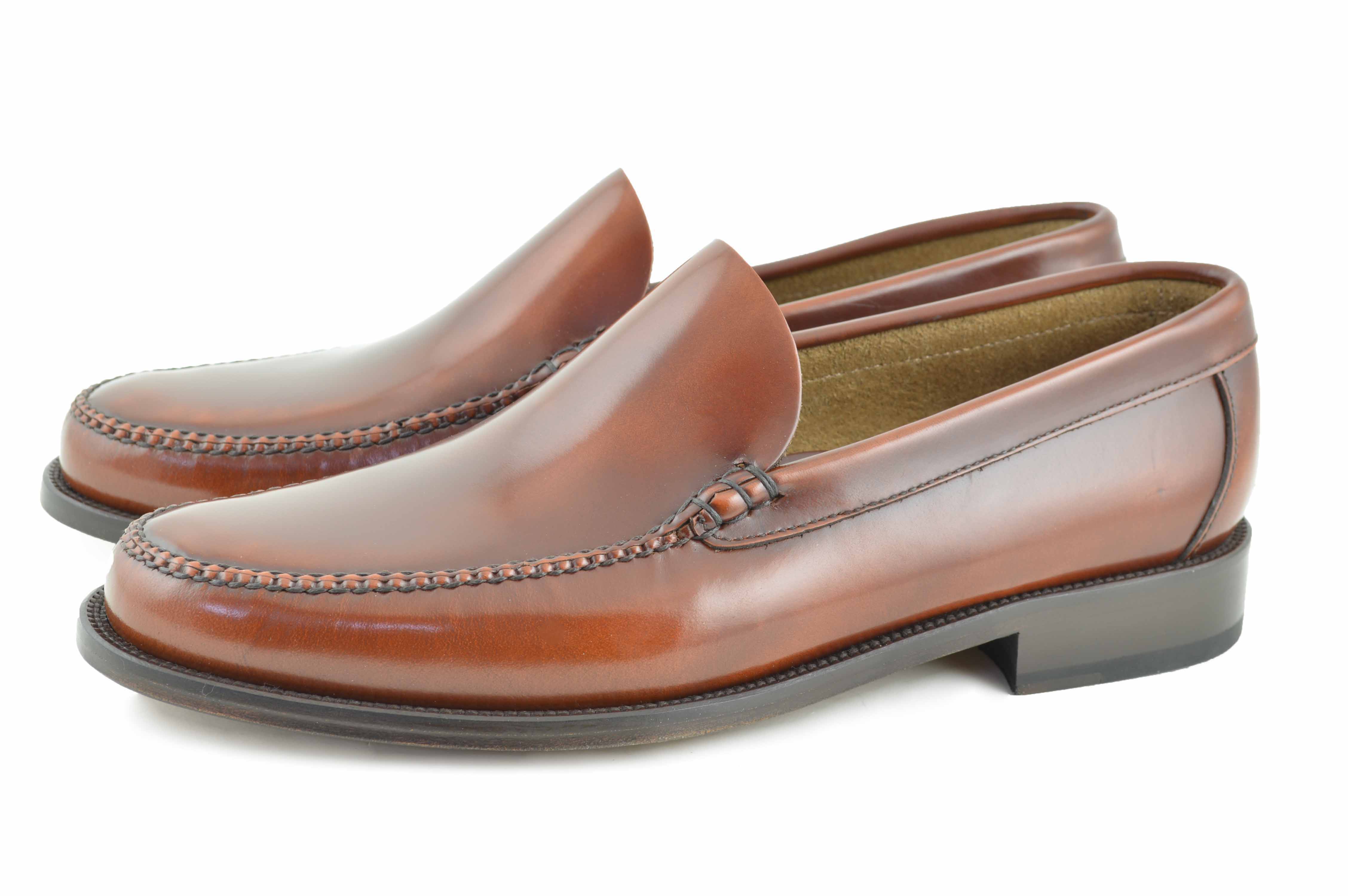 Zapato realizado en piel antic color avellana, forrado en piel y suela de cuero. Calce confortable y puntera redondeada.